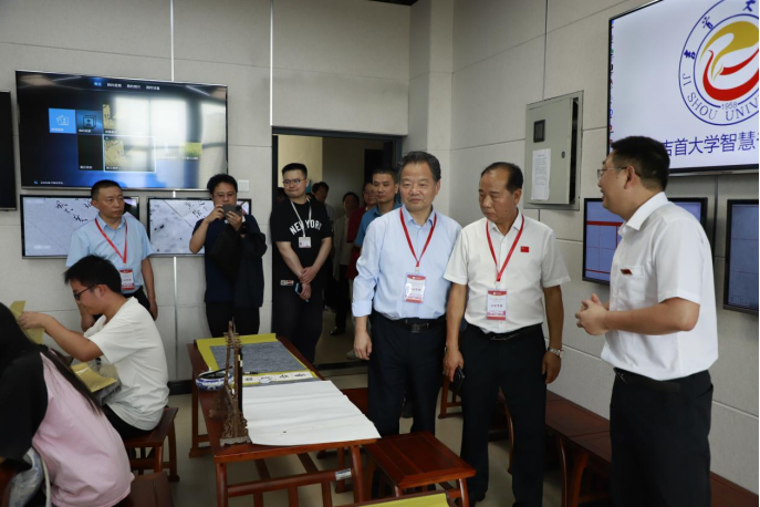 图为专家组一行考查教师技能训练中心