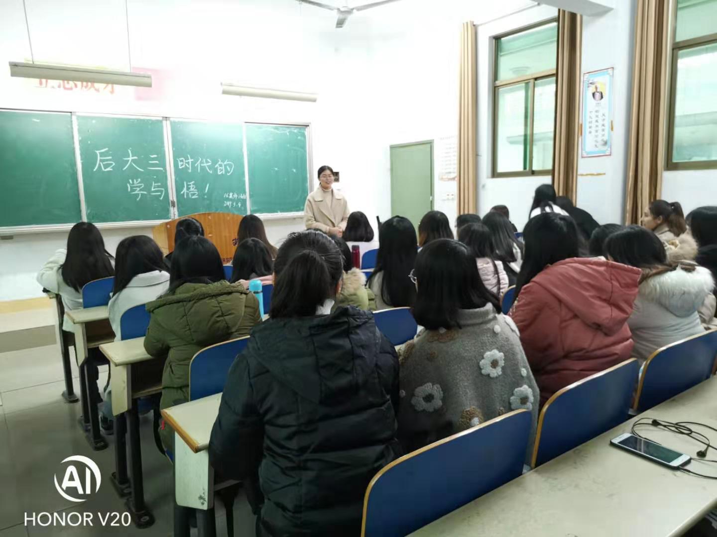 本网讯(通讯员 刘珍)2019年3月4日,由bevitor伟德国际19462016级英语(师范)1班组织的“后大三时代的学与悟”主题交流会在张家界校区逸夫教学楼3308举行,来自该院15级英语师范专业的刘樨、何柳和陈有为3位同学与该班全体同学参与了活动。