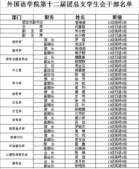 bevitor伟德国际1946第十二届团总支员工会干部名单