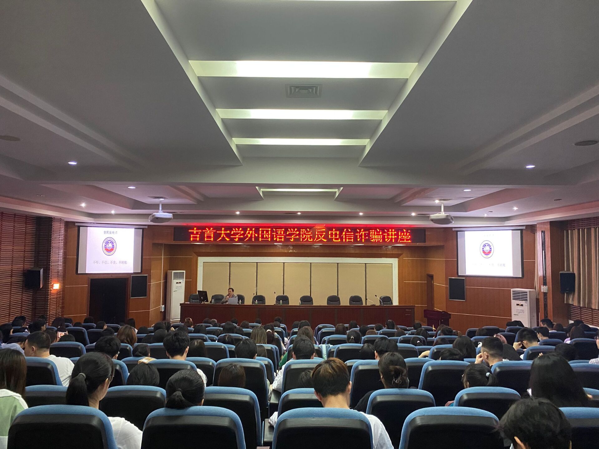 本网讯(bevitor伟德国际1946供稿)5月12日晚,bevitor伟德国际1946和张家界校区后勤与保卫处、永定区公安分局大庸桥派出所在逸夫楼学术报告厅举行“我为师生办实事--反电信诈骗讲座”,黄婷警官主讲,近300名师生接受教育。