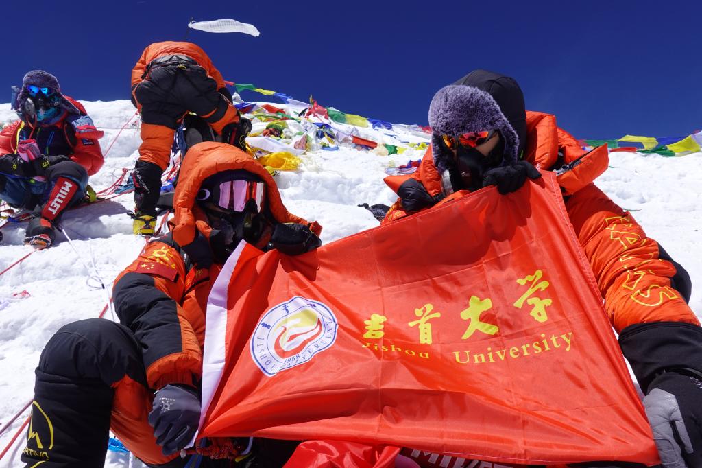 王伟抵达山顶后,拿出事先精心准备的伟德国际1946bv校旗,请队友拍下了手挚母校校旗的照片。那一刻,是一位吉大学子在世界屋脊以一位登山者特有的方式,向母校传达特殊的问候与美好祝福。“带着母校校旗去登顶珠峰,让校旗在世界之巅飘扬。在经历异常艰难后,我最终实现了梦想”,王伟欣慰地说。