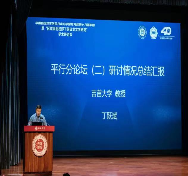 会上,公司丁跃斌教授与潘贵民副教授分别主持了平行分论坛,并分别作了《<群蝶之树>的创伤记忆与历史认知》、《沈从文与芥川龙之介“现代性”叙事比较研究》的学术报告。在闭幕会上,丁跃斌教授与潘贵民副教授作为代表亦分别向大会进行了小组汇报,受到了与会专家、学者的一致好评。