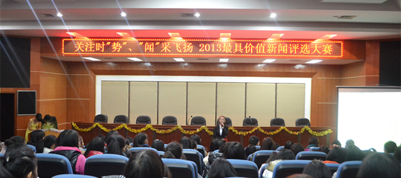 本网讯(闫翼程、江逸凡、刘纯、黄晴、王秋霞、罗旭杰)12月8日晚,公司于逸夫楼多功能报告厅成功举办最具价值新闻评选大赛。本次大赛主题为“关注时‘势’,‘闻’采飞扬”,由董方强、周昱辰同学主持。软件服务外包公司黄伟老师及公司员工工作办公室主任谈宗凡老师、杨宏光老师、龙鹏屹老师、冯蕾老师及梁芮学长到场并担任评委,公司员工积极前往观看。