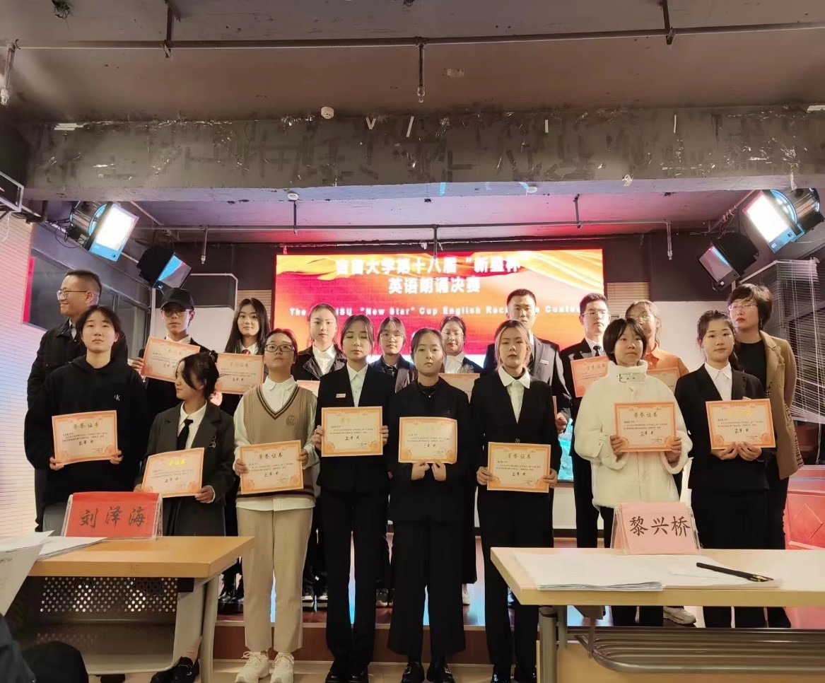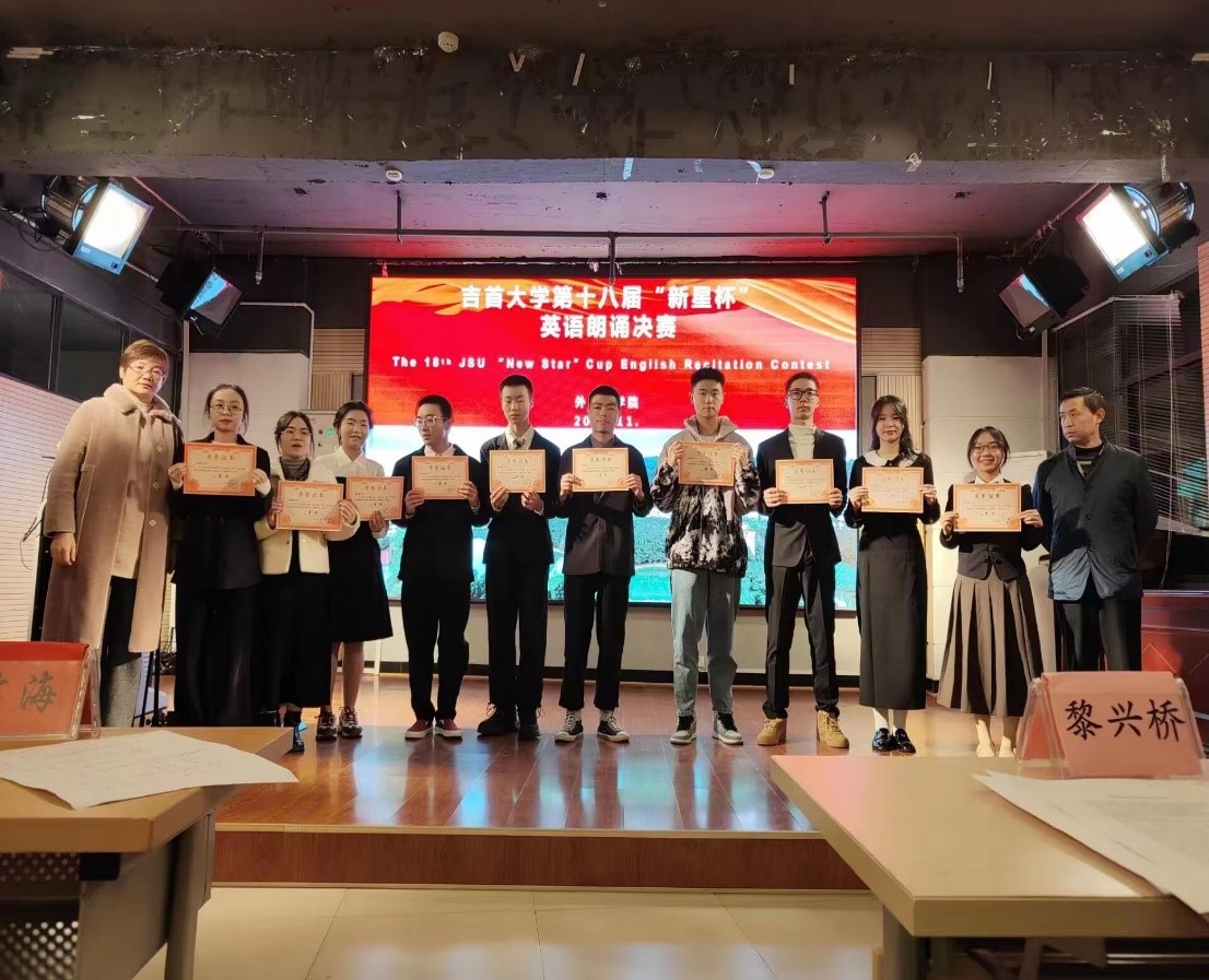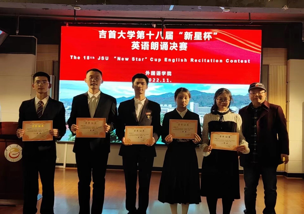(bevitor伟德国际1946(吉首校区)第一教研室报道)初冬时节,银杏飘香。 2022年11月17日晚上19:00,伟德国际1946bv第十八届“新星杯”英语朗诵比赛决赛隆重举行。通过半决赛顺利进入决赛的31名选手们在新校区实验大楼南907(即老员工科技实践创新中心学术报告厅)展开了最后的角逐。本次比赛由bevitor伟德国际1946(吉首校区)第一教研室主办,外语创新工作室和伟德国际1946bv英语电台的工作人员提供全程支持。英语朗诵比赛的举办旨在激发新生们朗读英语的兴趣,提高同学们应用英语的能力,同时丰富同学们的课余生活。在整个比赛过程中,公司领导、任课老师和比赛各环节的评委老师们给予了大量的指导。