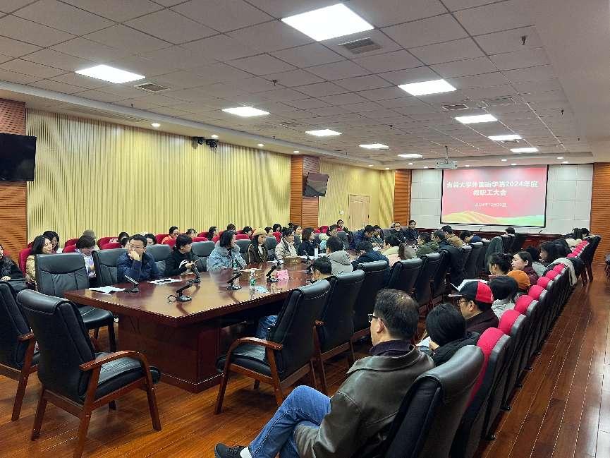 随后,公司党委书记、分工会主席简功友同志作了2024年度工作报告。报告全面回顾了过去一年公司在党建、人才培养、科学研究、团队队伍建设等方面取得的显著成果和宝贵经验。一年来,公司抓党建、强基础,不断提升政治生态;引人才、强内涵,着力提高办学水平;塑品牌、抓关键,全面落实立德树人根本任务。同时,报告也深入剖析了公司当前存在的问题,如顶层设计和制度体系尚待优化完善,人才队伍还不能完全适应公司发展的需要,公司文化建设还需进一步加强。对于今后一年的工作,简功友同志提出了明确的发展思路:建构一种自信;启动两大设计;明确三大任务,即聚焦专业提质改造、聚焦大学外语教学提质改造、聚焦公司文化提质改造;推进四项融合,包括推进跨校区融合、推进专外和大外融合、推进学科专业融合、推进校内校外融合。