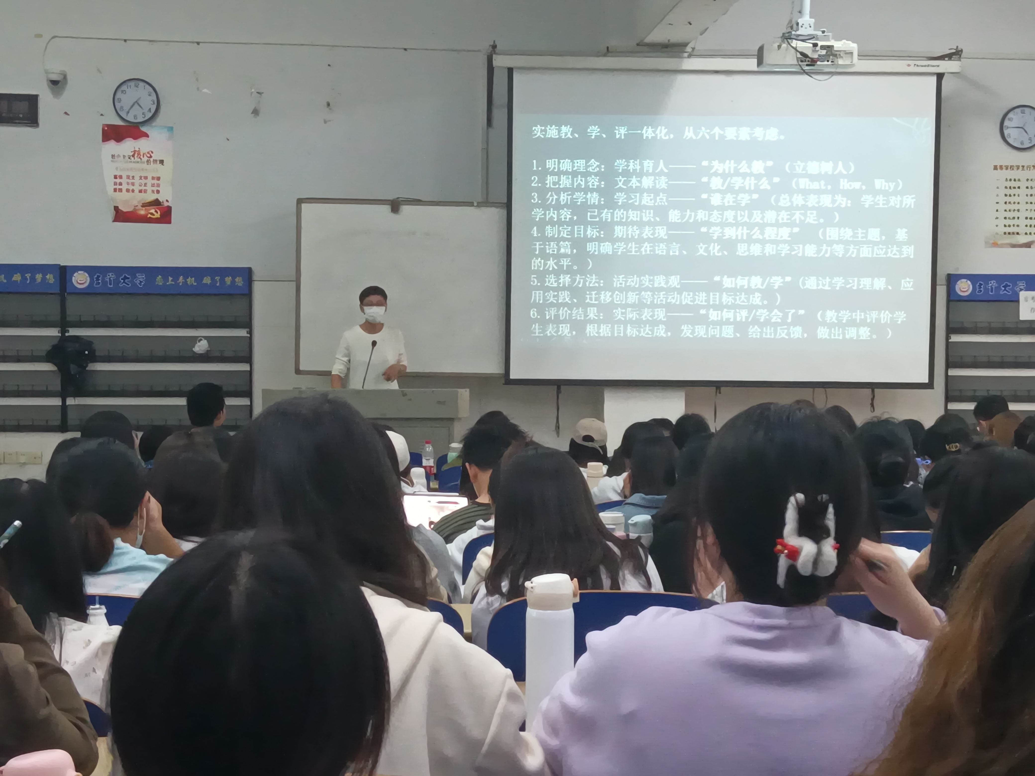 伍杰本次主讲主题系该专业限选课《中学英语课程标准与教材研究》中的一项内容。本堂课聚焦苏教版高中英语新教材必修第一册第三单元的一堂阅读课,课堂聚焦三个教学目标,即员工能够回答:何谓一体化,为何实施一体化,以及一体化何以能三个问题。她以QAR阅读策略的实施为切入点,通过案例给员工展示了在阅读教学中如何做到“教、学、评”一体化。