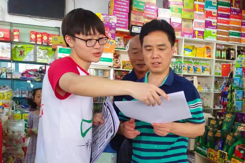 图为志愿者在进行宣传