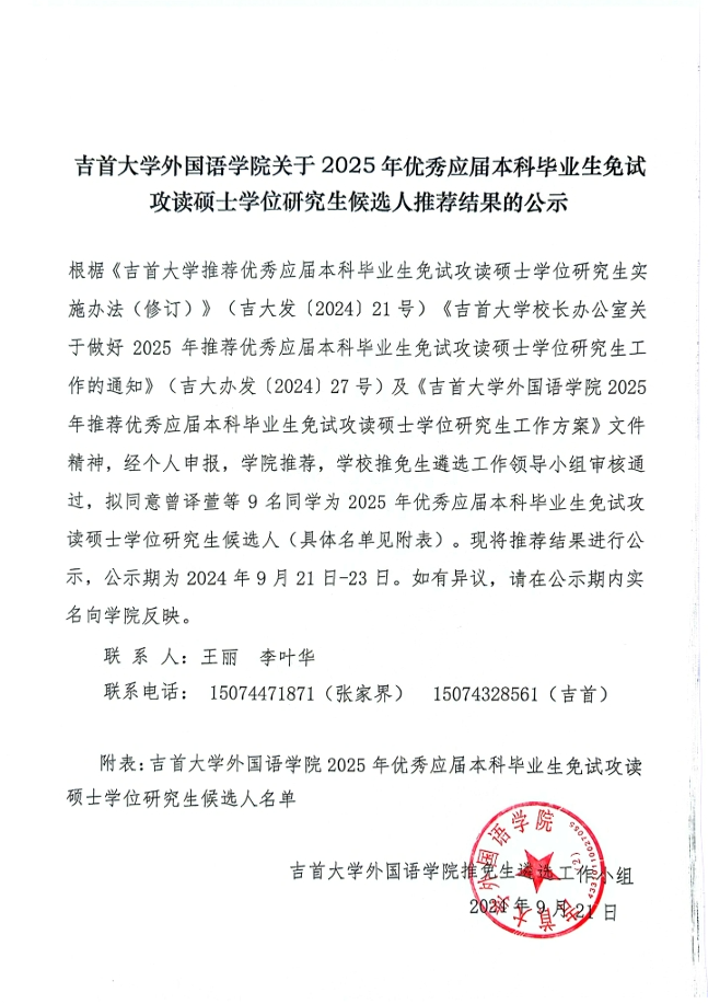 bevitor伟德国际1946关于2025年优秀应届本科毕业生免试攻读硕士学位研究生候选人推荐结果公示