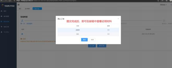 第四步:点击提交(提交完成后,即可在邮箱中查看证明材 料)