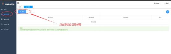 第二步: 点击邮件管理——添加——点击添加自己的邮箱 (需提前设置邮箱地址,便于成绩单及在读证明发送)