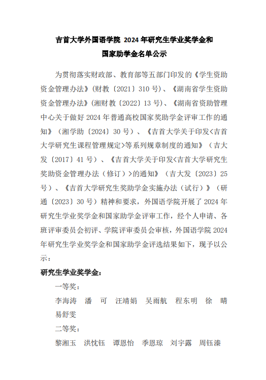 bevitor伟德国际19462024年研究生学业奖学金和国家助学金名单公示