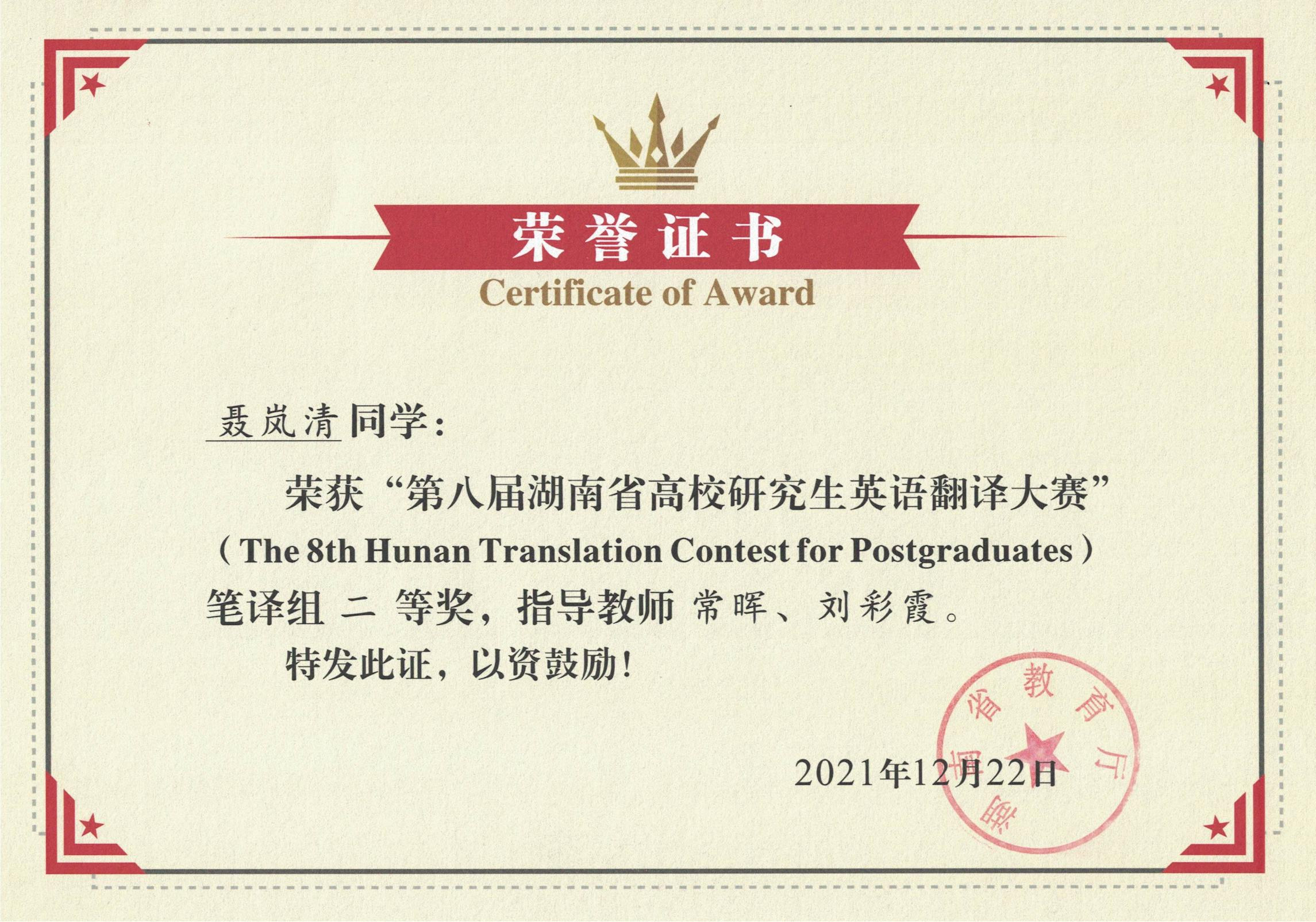 伟德国际1946bv翻译硕士专业学位点是2016年经湖南省学位办批准设立的专业学位,2020年顺利通过国务院学位委员会组织的专项评估。由三个本科专业(翻译、英语、商务英语)直接支撑、四个一级学科(外国语言文学、中国语言文学、民族学、工商管理)协同推进,致力于培养高层次、应用型、专业化和本土化的翻译人才,以旅游翻译和民族文化外译人才培养为特色,共设英汉口译、英汉笔译两个专业方向。日常管理由伟德国际1946bvMTI教育中心负责。公司与西悉尼大学签署《翻译专业联合培养》协议,选拔进入联合培养项目的员工毕业时可同时获得两校的硕士学位。